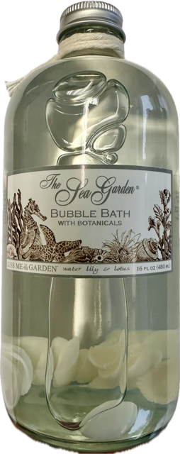 Botanical bubble bath, made in the USA. Paraben Free, Cruelty Free. Light scent of water lily and lotus.